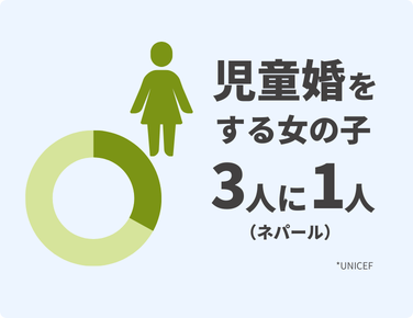 早期婚の慣習が根強いネパールの支援地域で、保護者への研修や青年グループの話し合いなどを実施しました。年間の結婚件数のうちの早期婚の割合が、約60%から約25%にまで減少しました。