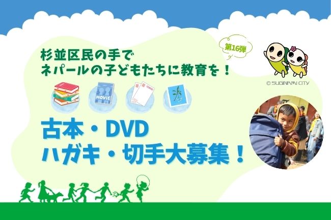 2025年12月1日より「杉並区民の手でネパールの子どもたちに教育を!」キャンペーン第16弾がスタート!古本やDVD、書き損じハガキや未使用切手などを区民の皆さまからご寄付いただき、ネパールの貧困地域の子どもたちに教育支援を届けます。